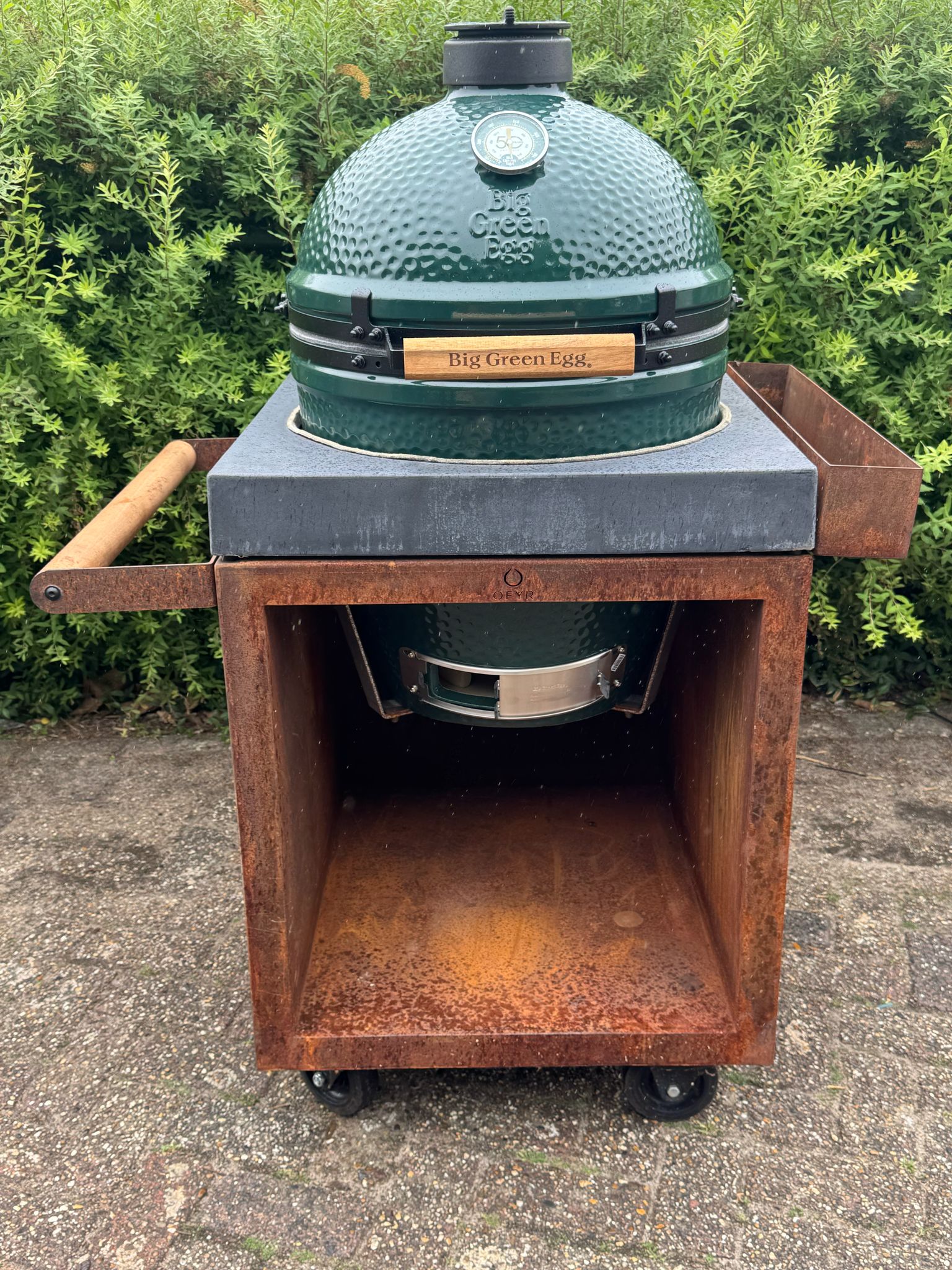 OFYR is meer dan alleen een kooktoestel; het is ook een ontwerpstuk in je tuin. Het robuuste staal, de strakke vorm en de aanwezigheid van echt vuur zorgen voor sfeer, zelfs als je niet aan het koken bent. Met extra’s zoals houtopslag, werkbladen en accessoires maak je van je OFYR een vaste ontmoetingsplek waar je net zo makkelijk borrelt als kookt.